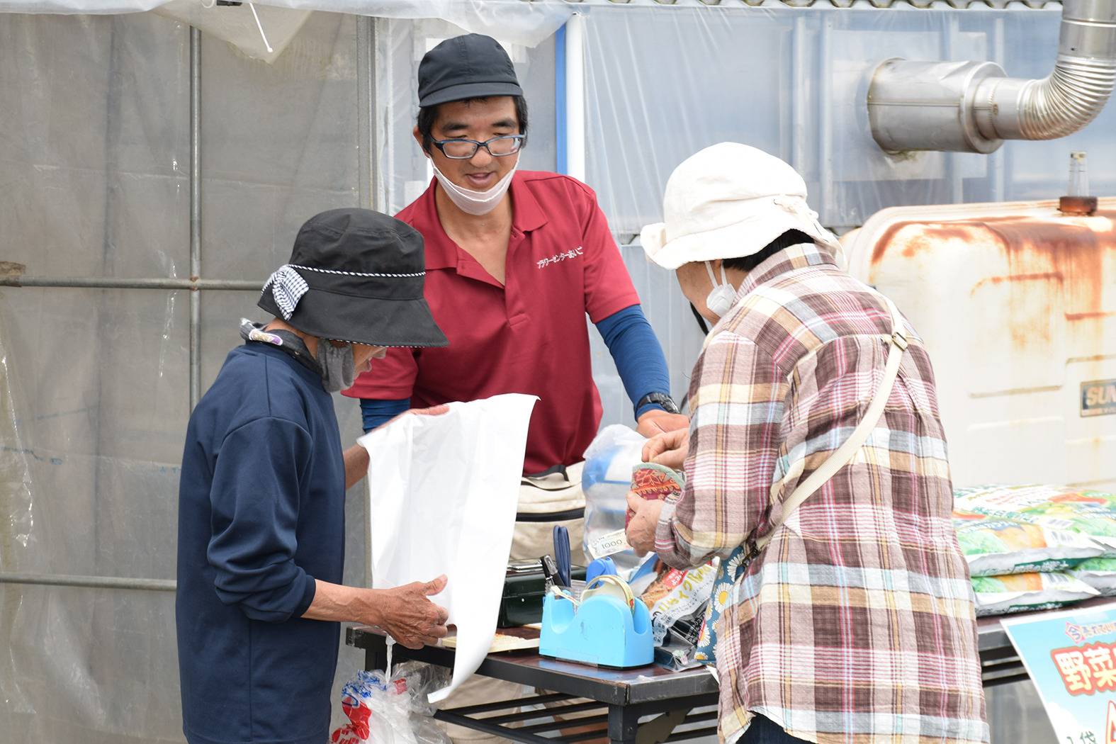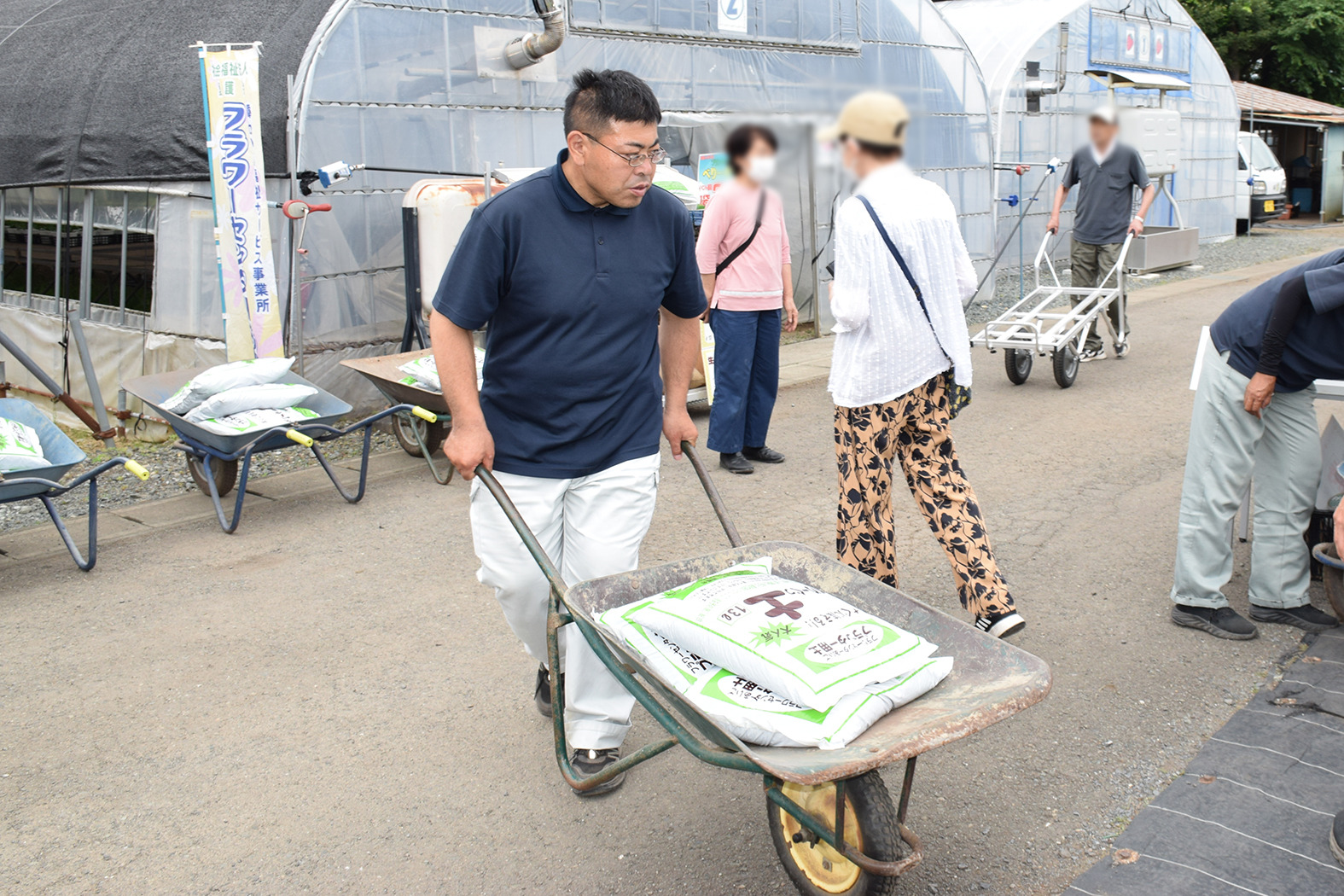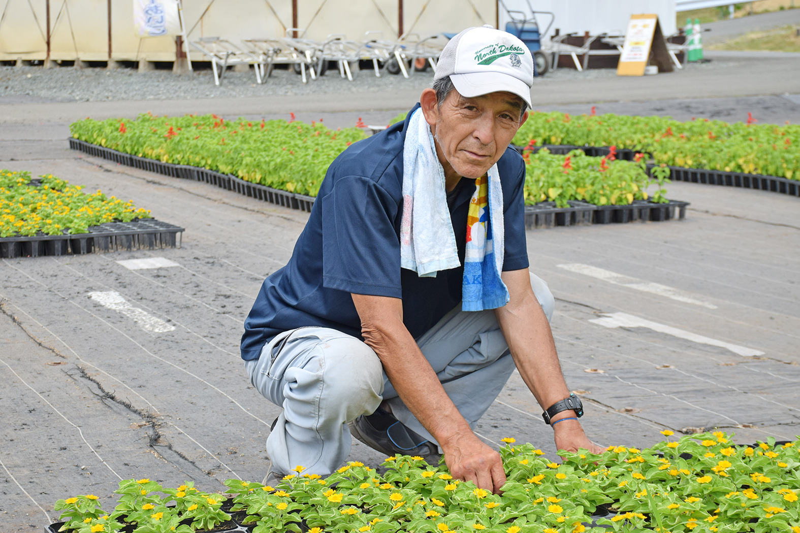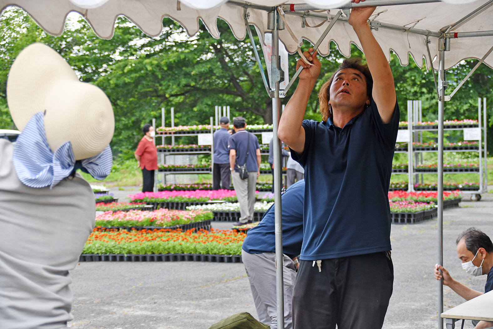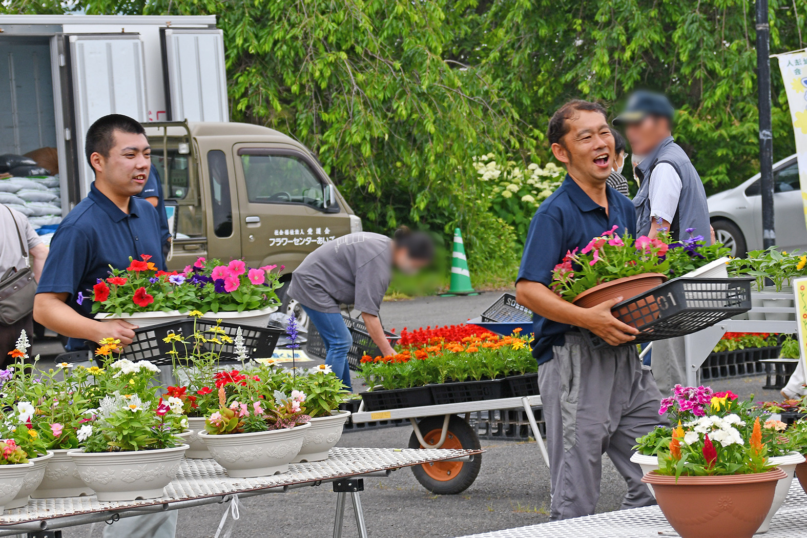 花壇の設計図をもとに、吟味して花苗を選んでいらっしゃいました